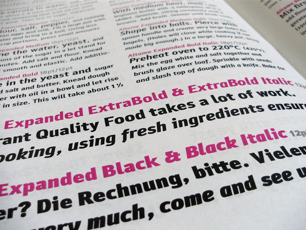 Altame Sans has a striking display variant, which really shines in the higher weights. Most ‘tails’ are removed, and the whole font is stiffened and tightened.